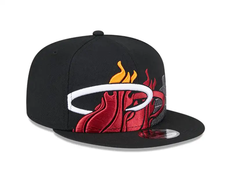 La silueta 9FIFTY ofrece el calce snapback clásico, con una corona de seis paneles altamente estructurada y perfil alto que garantiza una forma duradera y una estética urbana impecable. La pieza central es su gráfico frontal de gran tamaño, donde el icónico balón en llamas del Heat aparece bordado en relieve, fusionándose con un patrón de fuego sombreado que se extiende de manera dinámica hacia los laterales en tonos rojo, naranja y gris. El diseño se completa con una visera plana, un vibrante undervisor rojo que aporta un contraste de alto impacto y un cierre ajustable de presión en la parte posterior para un calce personalizado.